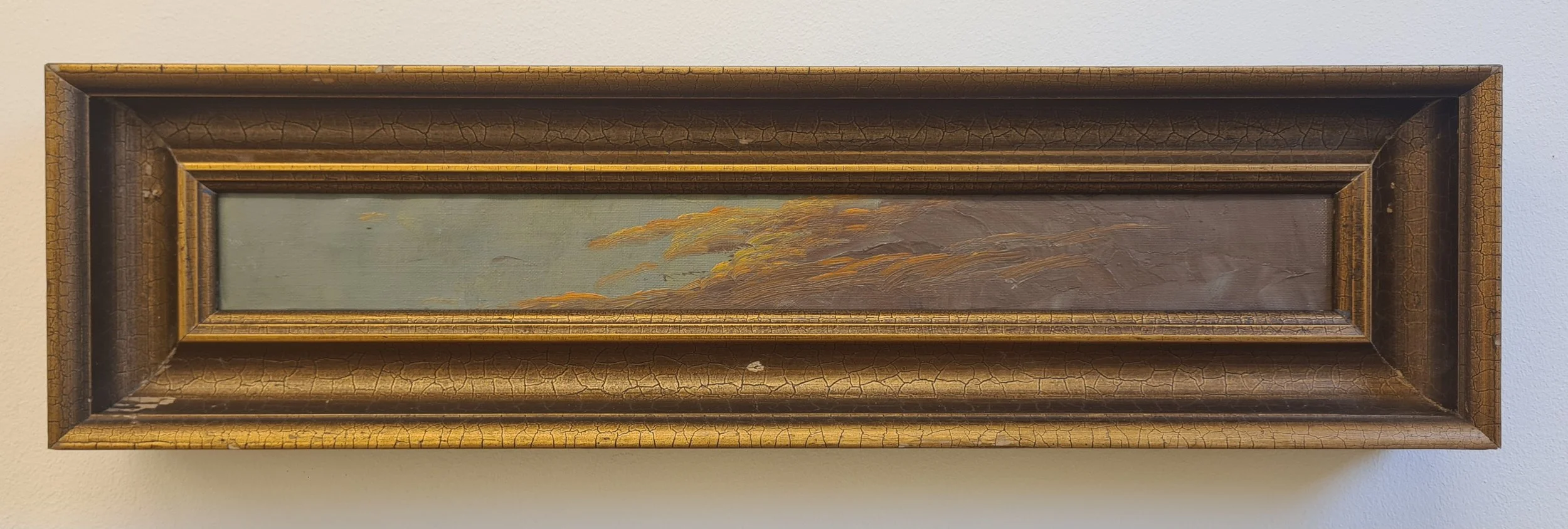 Anders Bonnesen's new body of works entitled Pieces of the Sky does a relatively simple thing, although the result may not be that simple; Bonnesen has bought various older paintings and cut and adjusted them – like the function called “crop” in image processing programs. What remains is the portion of the sky that was visible, undisturbed in the original painting, framed by the original frame. In some cases, the area of the image is smaller than that of the frame. In some cases, the image is almost a monochrome surface. But in all cases, these are images saturated with meaning.