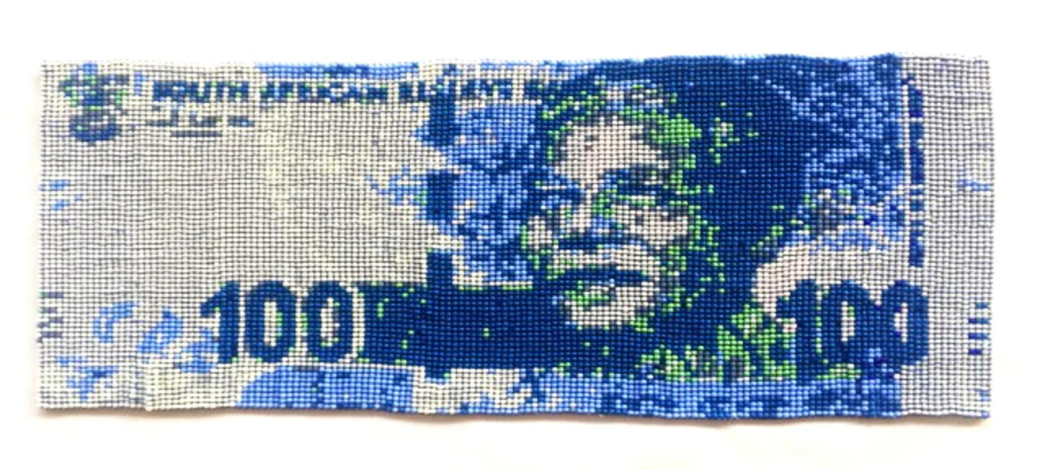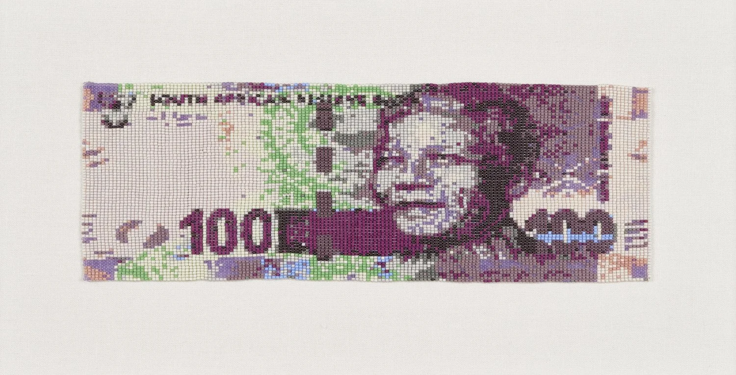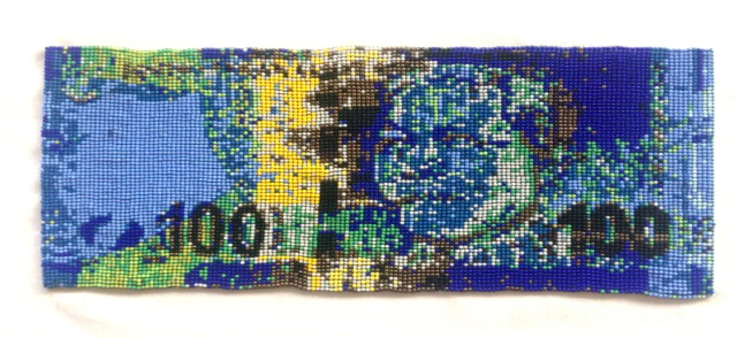 Beads and fabric (framed)
