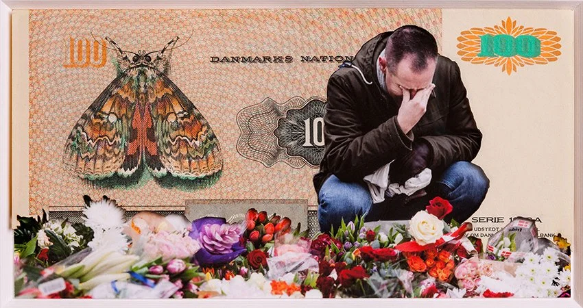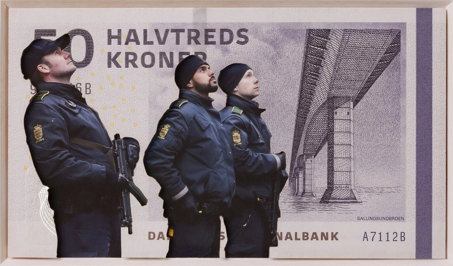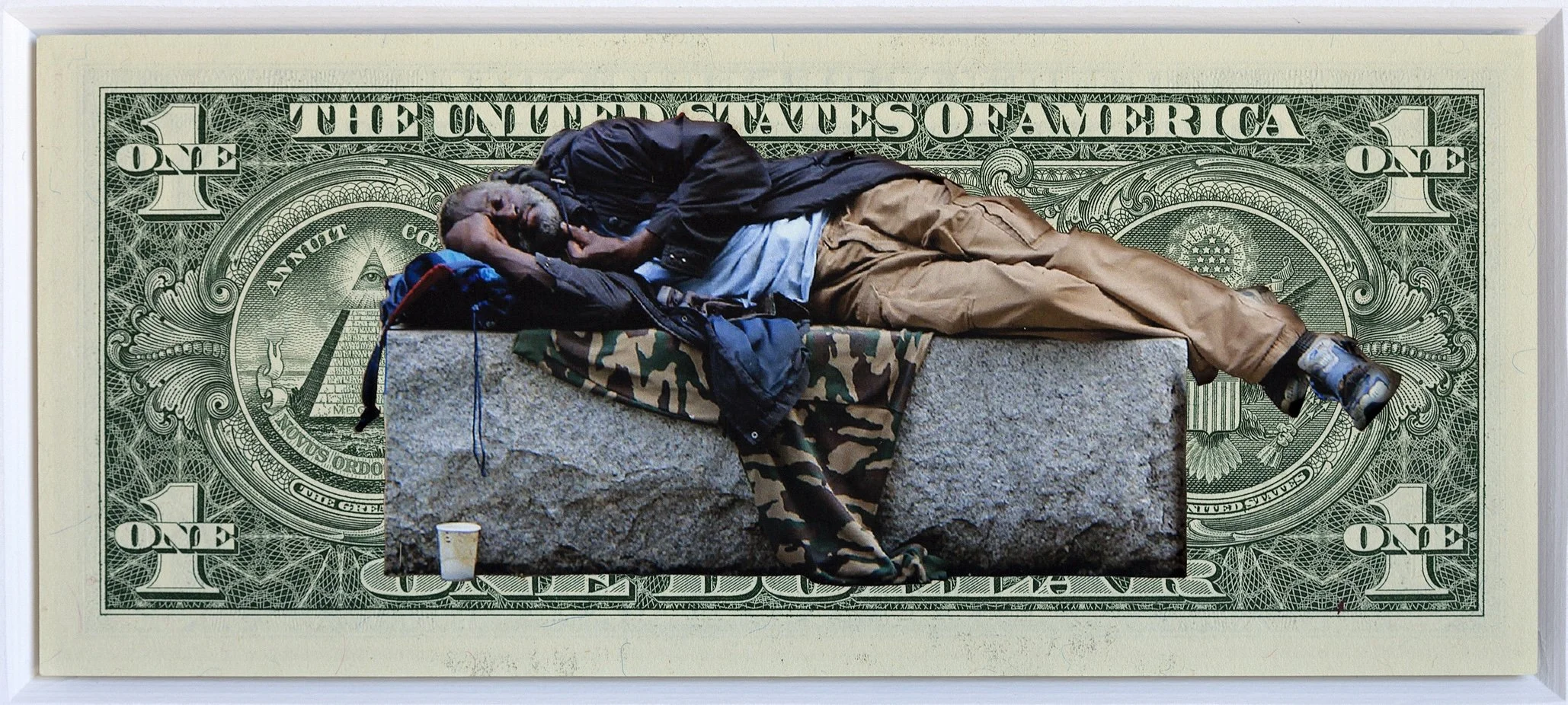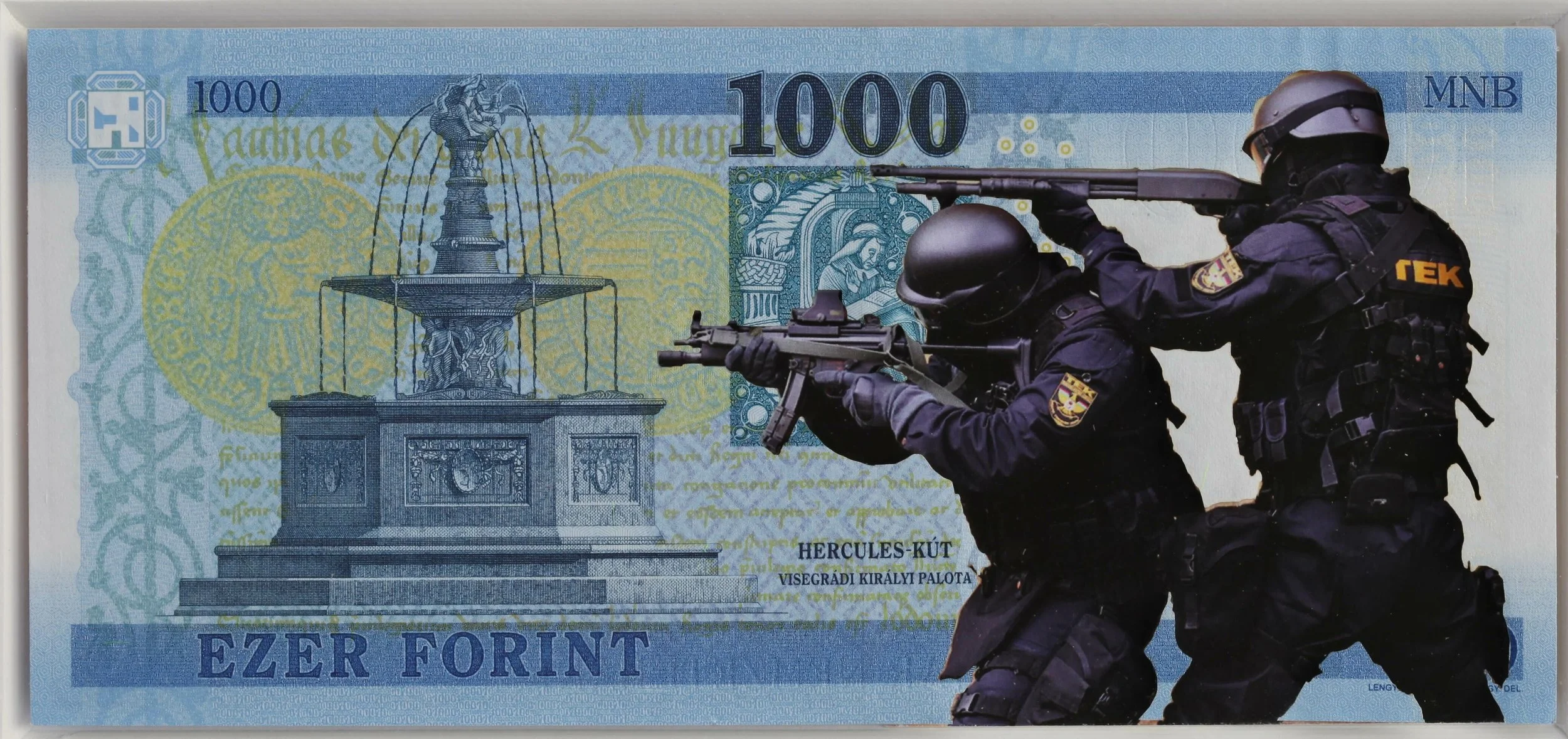 Original banknote, print, cardboard, frame w anti-reflective glass