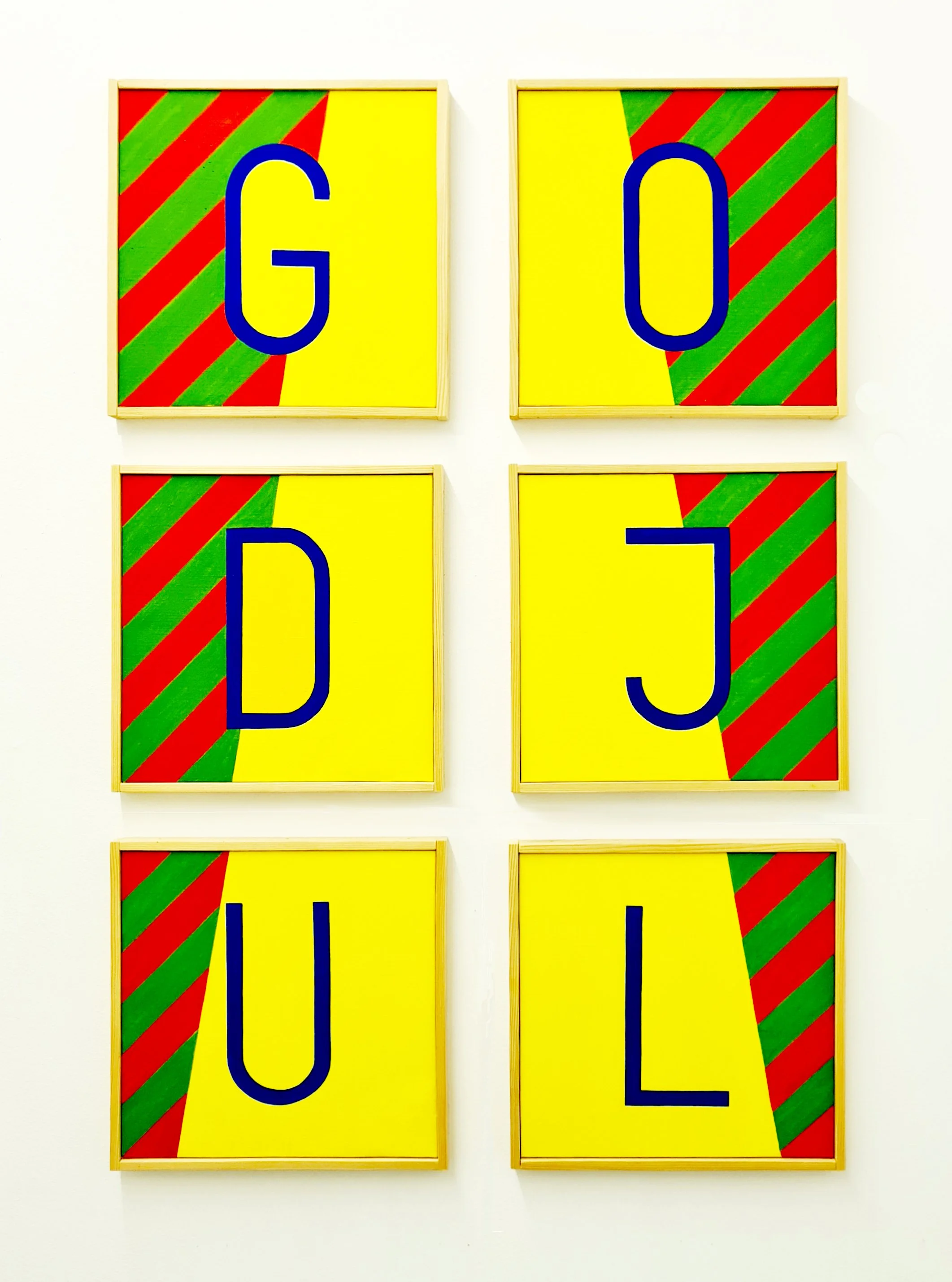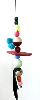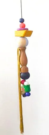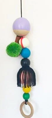 Wood, acrylic paint, wool/viscose thread